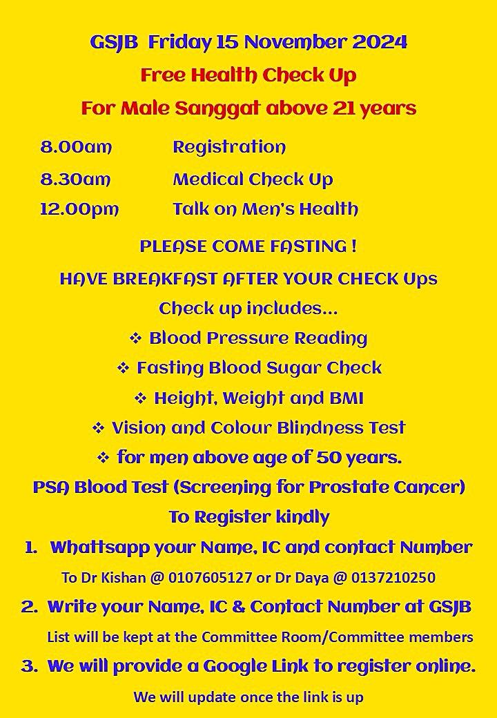 For those who are unable to register via the google link, please whatsap Dr Kishan (0107605127) / Dr Daya ( 0137210250), with these details.